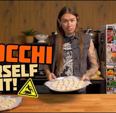 Flour your knife and cut your Gnocchi pieces and shape if desired.