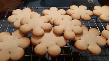 Bake for 15-20 mins or until the edges start to go golden - biscuits should be baked dry but not browned.