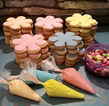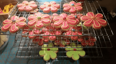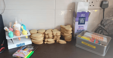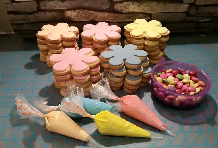 If decorating with cut fondant this should be applied as soon as the biscuits come out of the oven so prep either whilst the dough is chilling or the trays are baking. Applying fondant to the hot biscuit will let the underside melt to the biscuit without the need for an edible glue or jam.